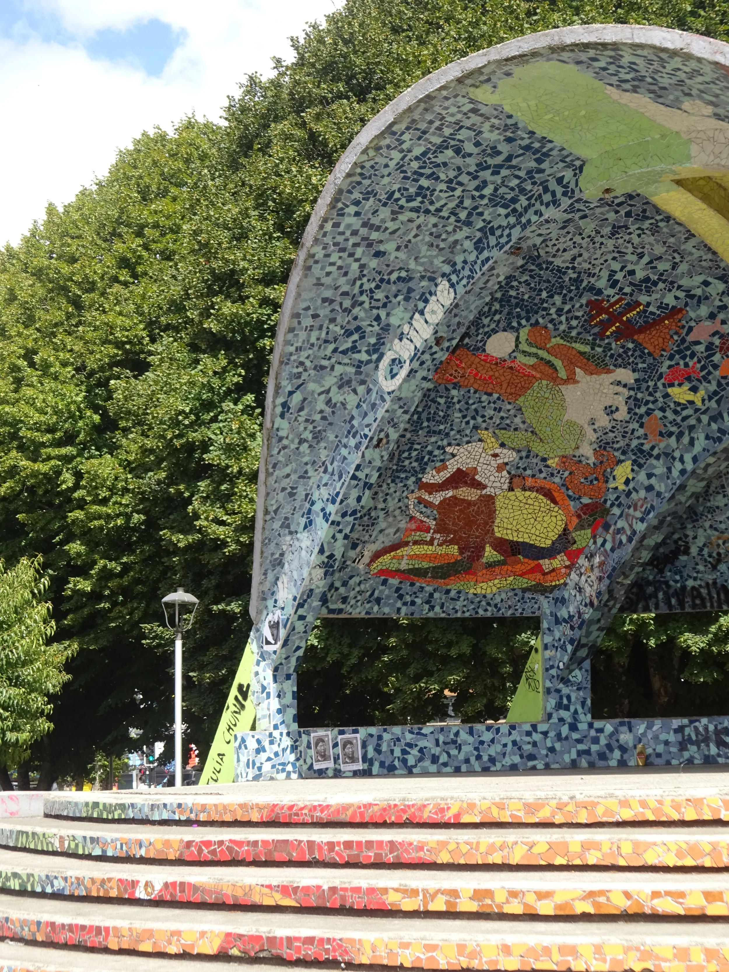 Our two stops on the island of Chiloé, Ancud and Castro, were generally pretty wet and grey, although we did get to see its most famous sights - churches built entirely out of wood and some (slightly underwhelming) houses on stilts. The highlight though was our penguin tour, where we saw three different types of penguin and were lucky enough to spend a few minutes with a pod of dolphins swimming round our boat.